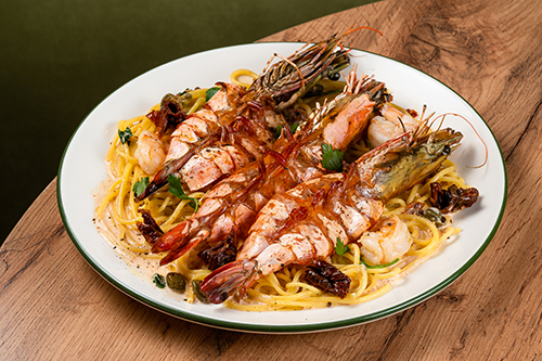 Спагетти с тигровыми креветками - классика с характером.